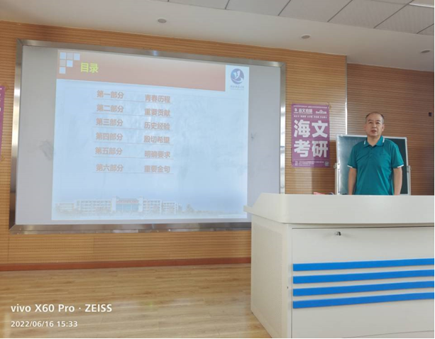 副院长刘世雄就学习习近平总书记在庆祝中国共产主义青年团成立100周年大会上的重要讲话作中心发言。他用PPT讲解,生动形象,给大家作了一次深刻的学习辅导报告。报告以《与党同心 跟党奋斗》为题,共分六个部分:青春历程;重要贡献;历史经验;殷切希望;明确要求;重要金句。