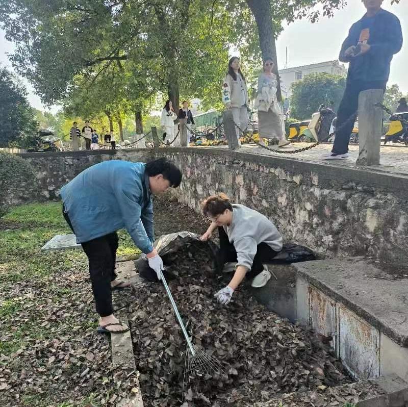 3月5日,在第60个学雷锋纪念日,米兰官网组织学生志愿者在咸安校区的包保片区开展“双文明创建•万人洁校”活动。