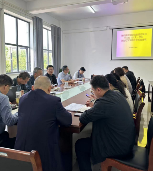 5月6日上午,milan米兰官网党委在实训楼附楼210会议室开展了党委理论学习中心组(扩大)学习暨党纪学习教育读书班开班仪式。党委第一书记樊熙参加会议并讲话,党委书记金延安主持会议,继教院全体教职工参加会议。