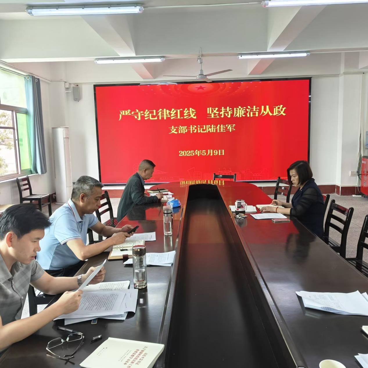 5月9日,教工支部书记陆佳军以“严守纪律红线,坚持廉洁从政”为题,为教工支部全体党员干部讲授了一场接地气的党课。
