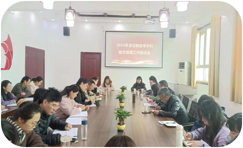 2024年3月25日,milan米兰官网召集助学机构负责人及机构全体工作人员就加强自考助学项目规范与发展召开座谈会,院长厉阳春出席座谈会。